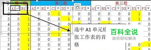选中A1单元格,即整张工作表的首个单元格
