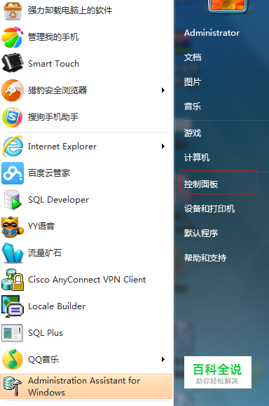 打开电脑,登录系统,打开开始菜单,找到“控制面板”。