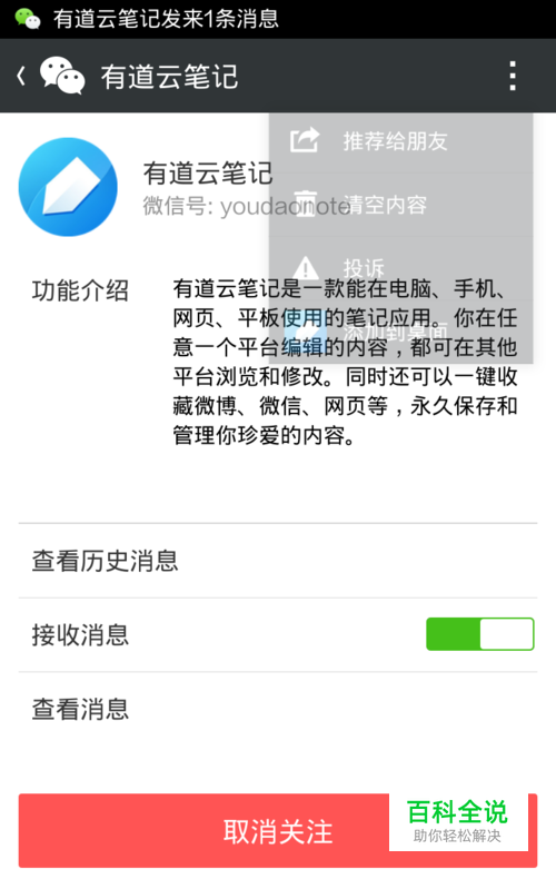 这里使用的云笔记软件是有道,下载安装有道笔记。 使用该功能要用到有道笔记的微信公众服务号。 云笔记就是利用服务号对接你发送的信息再保存到云端。
