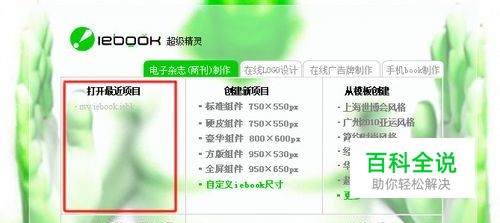 启动iebook超级精灵 2011版;新建方法A.单击左上角iebook超级精灵软件LOGO,在弹出的快捷菜单中选择“打开”