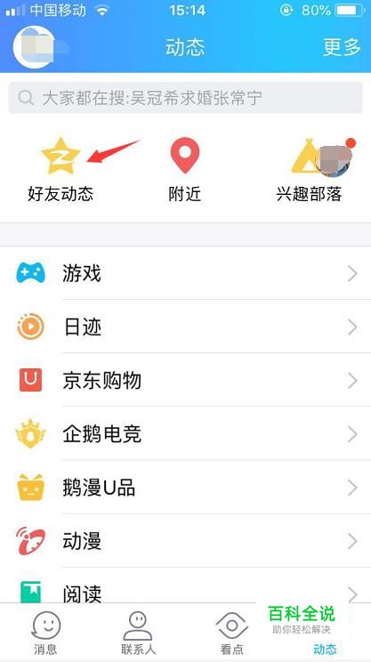 首先我们登录qq后在动态的页面里进入到好友动态。