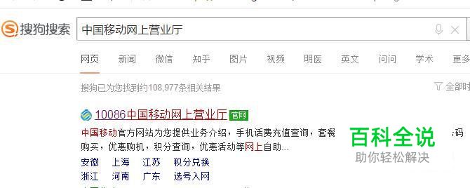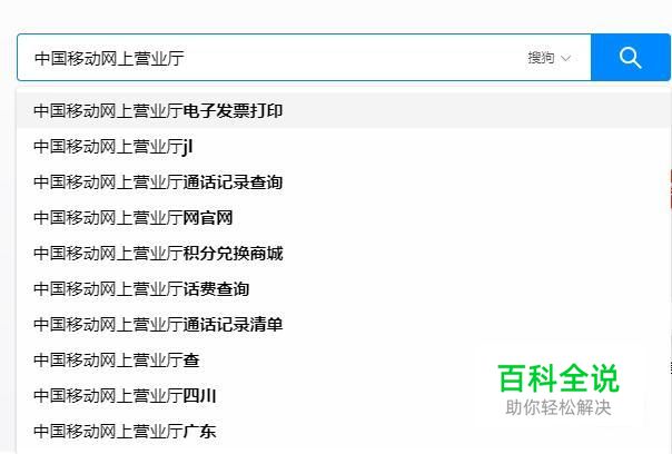 首先,在搜狗浏览器中输入中国移动网上营业厅并点击回车键,如下图所示。