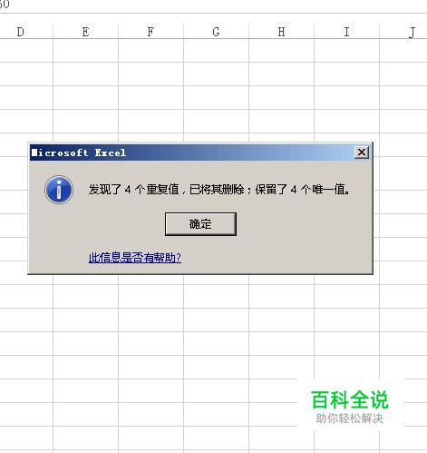 弹出对话框,如图所示,点选下面这一项,再点:删除重复项