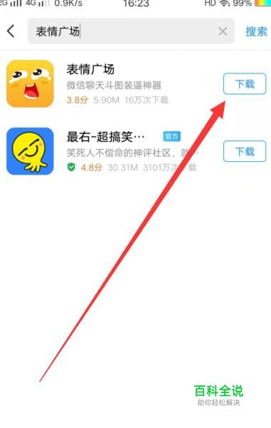 进入之后,搜索“表情广场”,点击下载并安装,如图所示。