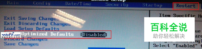 1. 开机F1进入BIOS,选择【restart】-【OS Optimized Defaults】如下图:
