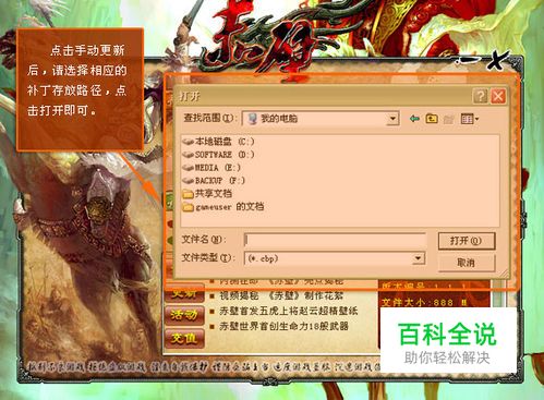 如果您的网络环境不好也可以选择手动更新,首先需要在《赤壁》官网先下载相应的更新补丁,然后点击手动升级。