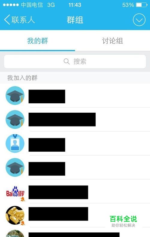 点击了上图红框“群”的标识之后,就会进入到“群”的界面,你所加入的所有的群都会在这里显示出来!