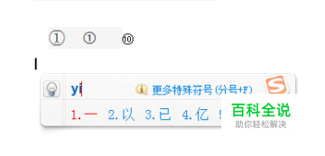 用搜狗输入法,打拼音yi 这时你会发现,第五个就是带圈的阿拉伯数字1,这时点击键盘上的5,你就会发现打出来的1,是带圆圈的。