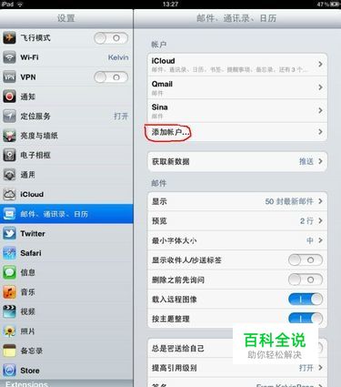 言归正传,在用IPAD收发邮件之前,需要先在IPAD邮件设置功能里添加你的邮箱,然后就可以收发邮件了。具体操作步骤如下: