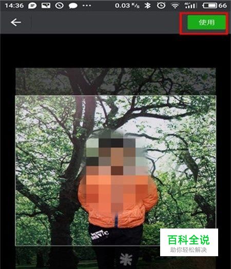 所选择的图片就出现在了设置框内,进行适当上下左右调整到合适位置,然后点击一下右上角的”使用“,稍等一下,等待图片上传就设置成功了。