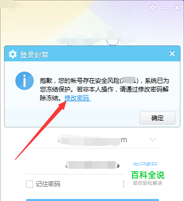 如图所示,在登录界面中输入你的账号密码,然后点击下方的“登录”,系统提示账号已经被封禁。点击图示框中的“修改密码”。