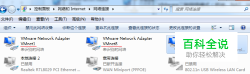 演示采用的是windows7和VMware Workstation7.15中文版本。下载软件,一路下一步安装完毕后,打开控制面板--网络和共享中心--更改适配器设置,在网络连接里面会多出两块网卡图标。其中VMnet1是虚拟机Host-only模式的网络接口,VMnet8是NAT模式的网络接口。