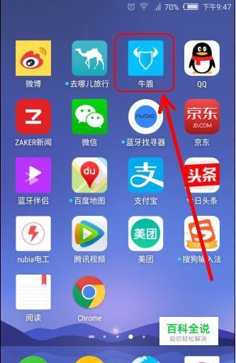 一般,努比亚手机出厂就内置有牛盾应用程序。我们可以通过牛盾来查看手机应用程序的权限,以及修改应用程序的权限。 打开手机上的牛盾。