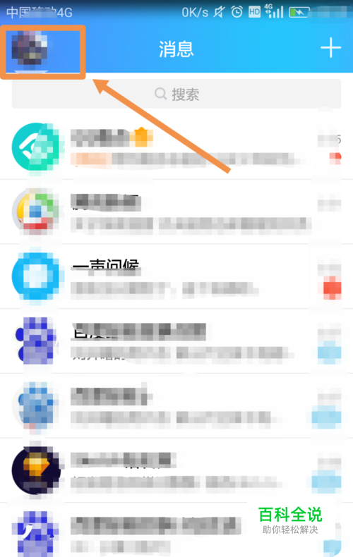 打开手机应用【QQ】,进入qq首页,找到左上角的用户头像并点击,如图: