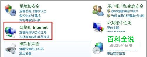 在“控制面板”中点击“网络和Internet”按钮,如下图红框所示。