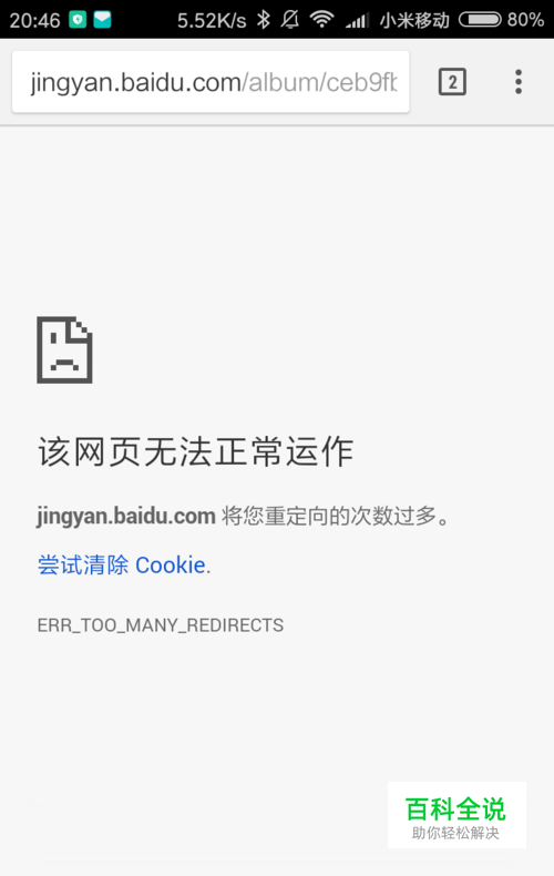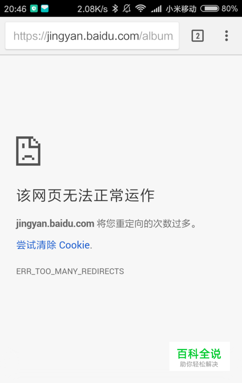 安卓谷歌浏览器有时出现"该网页无法正常运作,xxx将您重定向的次数过多,ERROR_TOO_MANY_REDIRECTS"的问题,而在错误页面已经给出了解决办法,即"尝试清除 Cookie",只不过一点击"尝试清除 Cookie"就跳转到谷歌的网站。手动的解决方法: