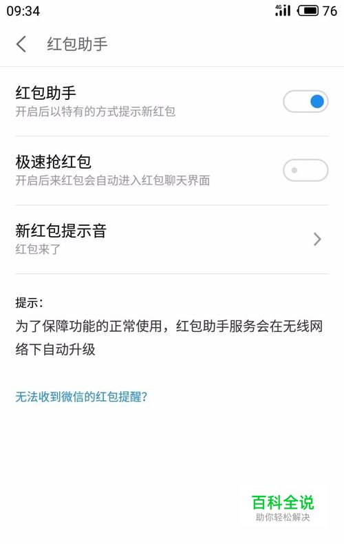 进入到红包助手界面,默认的是开启。