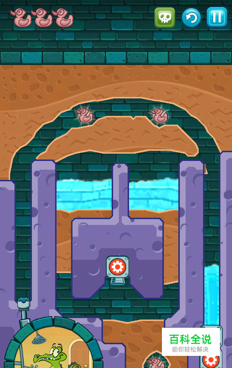 红色机关被启动后,别忘了将水放下去收集到第三只鸭子,这样你就顺利三鸭过关了。