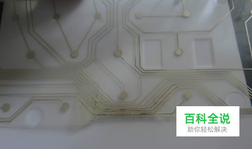 轻轻拿下印制电路,印制电路为双层透明,中间还有一夹层,对应的找到失灵键的位置,用万用表欧姆档检测失灵键的电路断路的地方,如通路表针会动,断路表针无反应,如没有万用表,可以用电池,小灯来代替,小灯亮起,说明这段电路是好的,小灯不亮,说明这段电路不通。故障找到了。