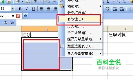 大多数的资料里都会有性别这一项选择,人就两种不是男人就是女人,至于双性人有,但是我们大多数人是没见过的。 如果想让他们只输入男女,具体办法就是选中需要输入性别的单元格。点击---数据---有效性。