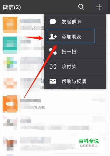 首先我们打开微信,点击右上方的“+”号,选择“添加朋友”