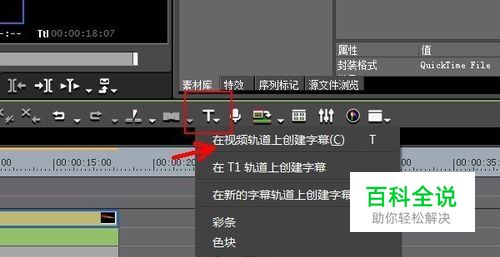 点击轨道组上方的大写"T",选择“在视频轨道上创建字幕” 或者使用快捷键“T” 我们在一个视频轨道上建立一个字幕,不要把字幕见到字幕轨道上去