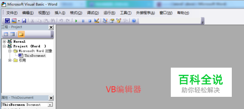 打开word文档,然后使用组合建“alt+F11”打VBA编辑器,如图所示。