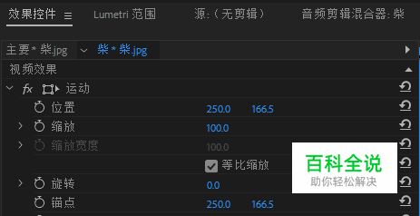 *先添加好素材 *看到‘’效果控件‘点击红框中的图标,图标变蓝,出现如右边所示的那个小菱形,这代表已经添加此时的对应效果的关键帧了 再点击一下,则删除对应关键帧 *如图三,点击圆形图标,添加关键帧