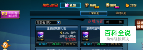 进入商城之后,依次点击道具,下一级菜单中的道具,将页数翻到第二页,就能够看到商品 “净化圣水”,如下图所示。