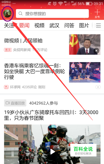 登录今日头条后的界面如下,点击左上角的头像(有些版本在右下角显示为“我的”)。