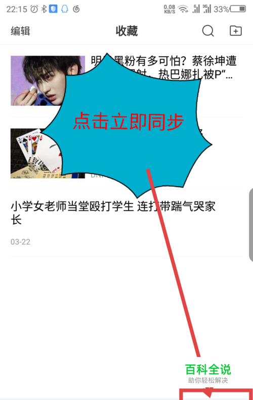 在收藏界面能看到所有的收藏,如果少了,可能还没有同步呢,点击右下角的立即同步。如图所示