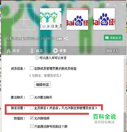 此时就全部群里的成员都不能发言了,当然除开群主大人和管理员。至于解除此设置,就是将框中的√去掉,就可以了。