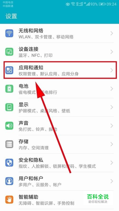 打开设置面板,找到“应用和通知”栏,点开它