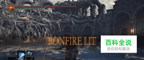 确定系统命令,玩家角色就会将我们获得的螺旋剑刺入篝火之中,从而 点燃游戏中第一个有传送作用的基础篝火。