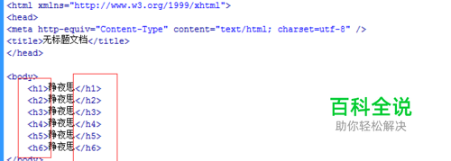 注意这是一个双标签,别忘了结束标签</h1>,前后取值要一样