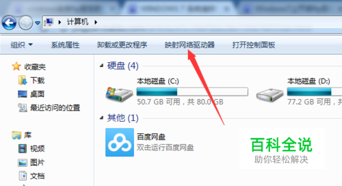 进行打开计算机之后,进行点击菜单中的“映射网络驱动器”的菜单。