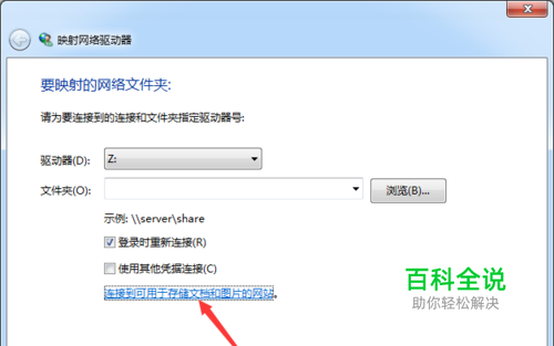进入到了映射网络驱动器之后,进行点击连接到可用于存储文档和图片的网站。