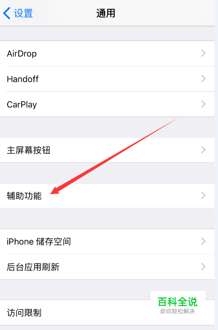 进入通用选项后点击进入辅助功能选项