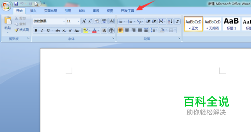 进入Word主界面,点击上方菜单栏处的【开发工具】选项