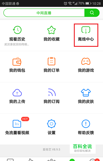 第一步在我们的手机打开APP,进去我的界面,选择离线中心,如下图所示: