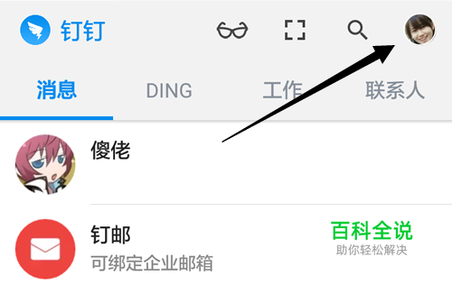 在手机上登录阿里钉钉,然后点击右上角位置的头像进入【我的】个人中心。