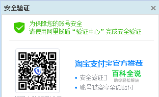 这时就出现问题了,要进行安全验证。拿起手机,利用微信的扫一扫功能,扫描下图所示的二维码,安装阿里钱盾进行急速验证。即可快速登录淘宝账号。