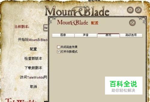 启动游戏(没进入剧本),进入第二项--配置,找到“打开作弊模式”选中