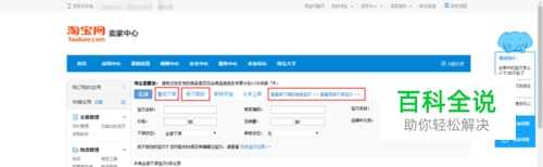 查询被下架的商品,可通过【卖家中心】-【仓库中的宝贝】到达以下截图所示页面查看原因