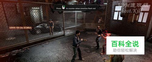 东跑西颠的最后还是被捕了,不过由于主角沈伟是卧底,所以很快释放了。从牢房中遇到了朋友Jackie出来后跟着jackie去见他BOSS,路上遇到一 群小混混,联系下出招吧,屏幕下方会有按键提示,照做就可以了,所有小混混都干掉的话最后的敌人会从柜台里跳出来,按F抓住他,这时候周围可以处决他的地 方会显示红框,把他推过去秒掉即可。