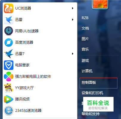 如图所示,在开始找到控制面板