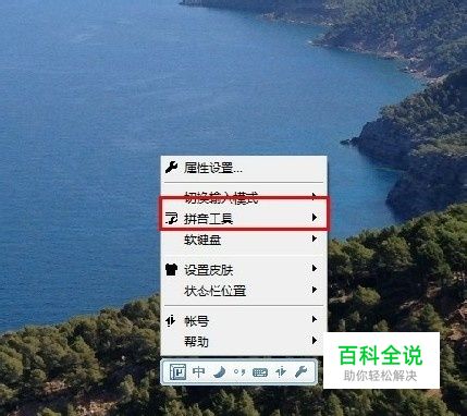 鼠标放在悬浮窗的上面,点击鼠标右键,会向上展示一个菜单选择栏,在弹出的菜单选择栏中选择由上到下第三行【拼音工具】