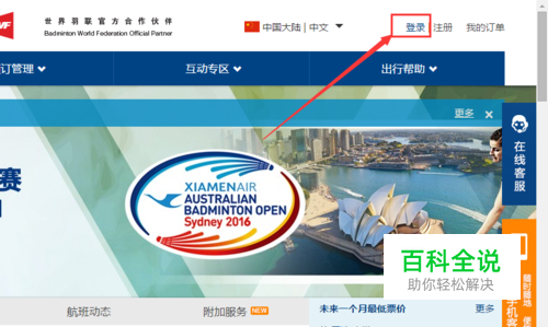 进入航空公司官网后,点击右上角的“ 登录”选项。