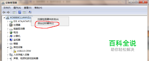 右键点击最上面的您的电脑的名称,选择 添加过时硬件