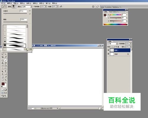 首先打开photoshop,新建一个画布,为了和背景分开,我们需要新建一层。然后选画笔工具,把笔刷调整到合适大小,我这里是用19号笔刷。
